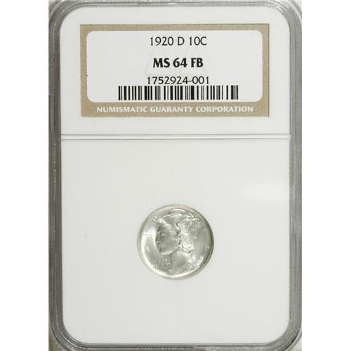 1920-D 10C MS64 Full Bands NGC. NGC Census: (50/19