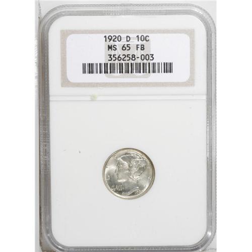 <B>1920-D<10C> MS65 Full Bands NGC.</B></I> Crisply detailed with intense satiny mint luster and essentially untoned silver-white surfaces that reveal minor die clashing on the right reverse field. Remarkably, there is no fadeaway on the 0 in the date. A conditionally scarce issue in Gem condition and with Full Bands. Census: 12 in 65 Full Bands, 6 finer (9/06).