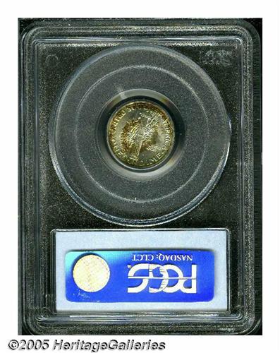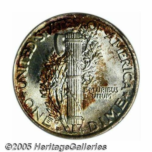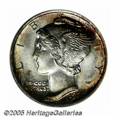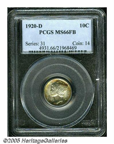 <B>1920-D<10C> MS66 Full Bands PCGS.</B></I> Even with a mintage of more than 19 million pieces, the 1920-D is both a condition rarity and a modest strike rarity among early branch mint issues. This Premium Gem example ignores the trend for only average sharpness and displays splashes of reddish-orange iridescent toning over both sides. Population: 11 in 66, 4 finer (4/05).<BR><I>From The Clifford Columbus Collection.</B></I>