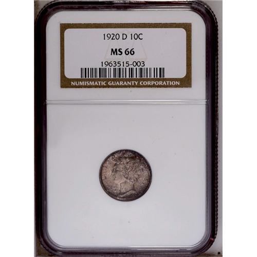 1920-D 10C MS66 NGC. Impeccably preserved surfaces, wi 1920-D[10C] MS66 NGC.