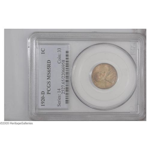 1920-D 1C MS65 Red PCGS. Crisply struck for the issue, 1920-D[1C] MS65 Red PCGS.