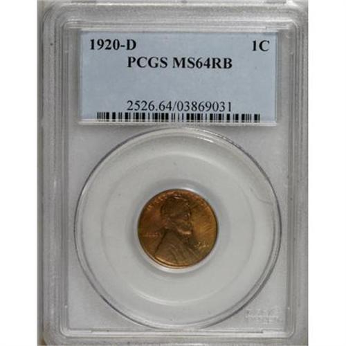 <B>1920-D 1C MS64 Red and Brown PCGS.</B></I> PCGS Population (112/26). NGC Census: (71/32). Mintage: 49,280,000. Numismedia Wsl. Price for NGC/PCGS coin in MS64: $142. (#2526)<BR><BR><B>Coin Engraver:</B> Victor D. Brenner<BR><BR><b>Shipping:</b> Coins & Currency (<a target="_blank" href="http://www.heritageauctions.com/common/shipping.php">view shipping information</a>)