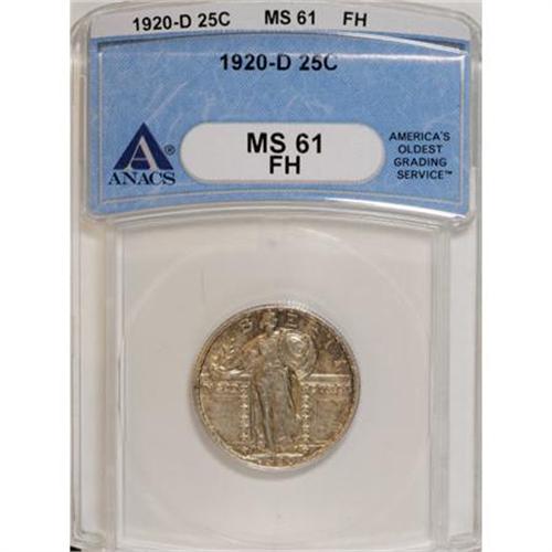 <B>1920-D 25C MS61 Full Head ANACS.</B></I> Well-defined and attractive. The pewter-gray and tan-orange surfaces are luminous with a number of wispy abrasions that have little impact on the visual appeal but significant influence on the technical grade.<BR><BR><B>Coin Engraver:</B> Hermon A. MacNeil<BR><BR><b>Shipping:</b> Coins & Currency (<a target="_blank" href="http://www.heritageauctions.com/common/shipping.php">view shipping information</a>)