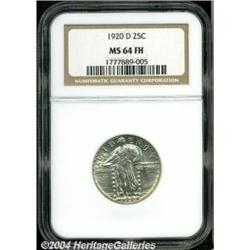 <B>1920-D<25C> MS64 Full Head NGC.</B></I> The 1920-D is a more difficult coin that one might at first imagine from looking at its mintage of 3.5 million pieces. Full Head examples are especially challenging and at the MS64 level this piece is only a fraction of the cost of a full Gem. This example is lightly and evenly toned with smooth, satiny mint luster. There are no obvious abrasions on either side of this pleasing near-Gem. Population: 18 in 64, 21 finer (7/04). <BR><BR><B>Important notice:</B> Heritage usually auctions material at the rate of 200-250 lots per hour. On some occasions eBay Live bid software or the Internet may not be able to keep up with the pace of the auction. We recommend placing a realistic absentee bid now as insurance to avoid disappointment. Occasionally the auctioneer may eliminate or reject an eBay Live bid, and the auctioneer may also reopen a lot after the close of the eBay live bidding (usually because we missed an audience bid), and may reject your bid even if it shows you as the winning bidder. By bidding via eBay Live, you agree that Heritage may award the lot to another bidder at its sole discretion under the circumstances described above or any other reasonable circumstances. Since eBay bids are not shown to us until we open the lot on the floor, we treat those bids just like floor bids. In most cases the floor responds before the eBay bid is presented to us, due to Internet lag time, so for consistency we have made it a policy that floor bids are always considered first over tie eBay live bids. Also please note that all Heritage lots purchased through eBay Live carry a 20% Buyer's Premium. Please make sure you read the Terms and Conditions before you bid. </span></font></tr></table></td></tr></table>
