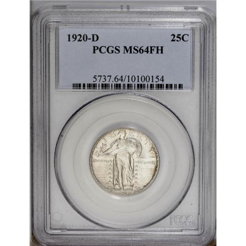 <B>1920-D<25C> MS64 Full Head PCGS.</B></I> Full Head representatives of this D-mint production are anything but common in today's numismatic market. This essentially brilliant specimen displays coruscating mint frost and a monumental strike for the series, save for the upper portion of the date. The premium quality surfaces are exceptionally clean for the grade. Population: 33 in 64, 40 finer (3/06).
