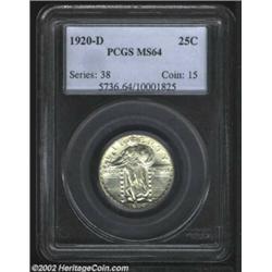 1920-D 25C MS64 PCGS. A nicely struck near-Gem that has flashy luster and a hint of gold color. The.