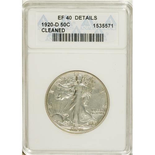 <B>1920-D 50C --Cleaned--ANACS. XF40 Details.</B></I> NGC Census: (10/312). PCGS Population (5/267). Mintage: 1,551,000. Numismedia Wsl. Price for NGC/PCGS coin in XF40: $342. (#6581)<BR><BR><b>Shipping:</b> Coins & Currency (<a target="_blank" href="http://www.heritageauctions.com/common/shipping.php">view shipping information</a>)