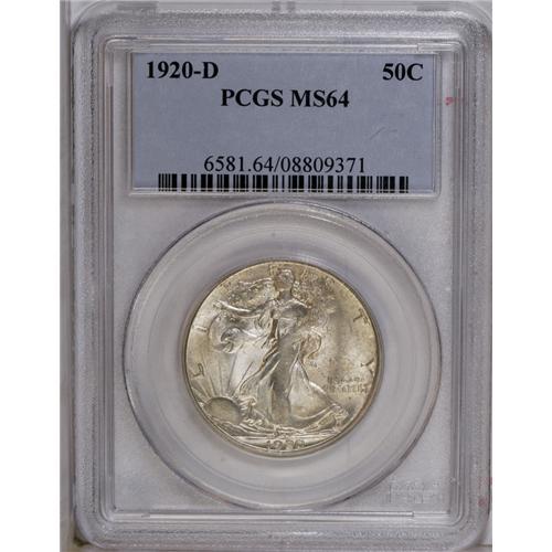 1920-D 50C MS64 PCGS. The lustrous, lightly marked sur
