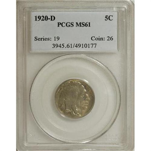 <B>1920-D 5C MS61 PCGS.</B></I> PCGS Population (6/381). NGC Census: (17/249). Mintage: 9,418,000. Numismedia Wsl. Price for NGC/PCGS coin in MS61: $525. (#3945)<BR><BR><B>Coin Engraver:</B> James E. Fraser<BR><BR><b>Shipping:</b> Coins & Currency (<a target="_blank" href="http://www.heritageauctions.com/common/shipping.php">view shipping information</a>)