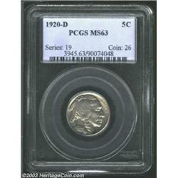 1920-D 5C MS63 PCGS. Mostly brilliant with above-average sharpness for a '20-D. One of several Uncir