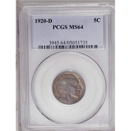 1920-D 5C MS64 PCGS. Beautifully toned lilac, chestnut 1920-D