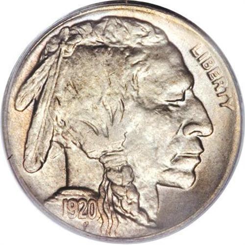 <B>1920-D 5C MS64 PCGS.</B></I> This near-Gem possesses a pleasing frosty luster, and displays pastel gray-blue, lilac, and gold patina. The design elements reveal the typical softness associated with this issue, especially the hair at the bison's forehead, and its tail. The date and mintmark, on the other hand, are strong, and the horn shows clearly. A few trivial handling marks occur on the obverse portrait.<BR><BR><B>Coin Engraver:</B> James E. Fraser<BR><BR><b>Shipping:</b> Coins & Currency (<a target="_blank" href="http://www.heritageauctions.com/common/shipping.php">view shipping information</a>)