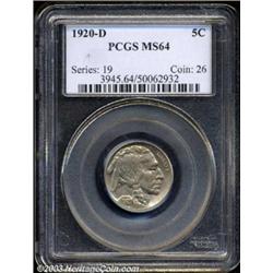 <TABLE cellSpacing=0 cellPadding=0 width="100%" bgColor=#000000 border=0><TBODY><TR><TD width="100%"><TABLE cellSpacing=1 cellPadding=3 width="100%" border=0><TBODY><TR><TD width="100%" bgColor=#79735c><FONT face=arial color=#ffffff size=3><B>Description</B> </FONT></TD></TR><TR><TD width="100%" bgColor=#ffffff><FONT face=arial size=2><B>1920-D 5C MS64 PCGS.</B></I> Sharply defined, save for the bison's head. A thin layer of argent-gray patina covers each side, somewhat limiting the reflectivity of the luster. </FONT></TD></TR></TBODY></TABLE></TD></TR></TBODY></TABLE><BR><A name=PricesRealized></A><TABLE cellSpacing=0 cellPadding=0 width="100%" bgColor=#000000 border=0><TBODY><TR><TD width="100%"><TABLE cellSpacing=1 cellPadding=3 width="100%" border=0><TBODY><TR><TD width="100%" bgColor=#79735c><A name=PR><FONT face=arial color=#ffffff size=3><B>Previous Prices from Heritage Auctions</B> </FONT></A></TD></TR><TR><TD bgColor=#f6f6ed><TABLE cellSpacing=0 cellPadding=0 width="100%" border=1><TBODY><TR><TD align=middle width="33%"><B>Date</B></TD><TD align=middle width="33%"><B>Service</B></TD><TD align=middle width="33%"><B>Price</B></TD></TR><TR bgColor=whitesmoke><TD width="33%"><B>08/02/1997</B></TD><TD width="33%">PCGS</TD><TD width="33%">$1,552.50</TD></TR><TR bgColor=whitesmoke><TD width="33%"><B>01/10/1998</B></TD><TD width="33%">PCGS</TD><TD width="33%">$1,638.75</TD></TR><TR bgColor=whitesmoke><TD width="33%"><B>02/13/2001</B></TD><TD width="33%">PCGS</TD><TD width="33%">$1,550.00</TD></TR><TR bgColor=whitesmoke><TD width="33%"><B>02/23/2001</B></TD><TD width="33%">PCGS</TD><TD width="33%">$2,415.00</TD></TR><TR bgColor=whitesmoke><TD width="33%"><B>08/07/1998</B></TD><TD width="33%">PCGS</TD><TD width="33%">$1,782.50</TD></TR><TR bgColor=whitesmoke><TD width="33%"><B>05/03/2003</B></TD><TD width="33%">PCGS</TD><TD width="33%">$1,610.00</TD></TR><TR bgColor=whitesmoke><TD width="33%"><B>01/11/2003</B></TD><TD width="33%">NGC</TD><TD width="33%">$1,725.00</TD></TR><TR bgColor=whitesmoke><TD width="33%"><B>01/01/1997</B></TD><TD width="33%">NGC</TD><TD width="33%">$1,265.00</TD></TR><TR bgColor=whitesmoke><TD width="33%"><B>03/01/2003</B></TD><TD width="33%">PCGS</TD><TD width="33%">$1,840.00</TD></TR><TR bgColor=whitesmoke><TD width="33%"><B>06/22/2000</B></TD><TD width="33%">PCGS</TD><TD width="33%">$1,783.00</TD></TR><TR bgColor=whitesmoke><TD width="33%"><B>05/27/2001</B></TD><TD width="33%">PCGS</TD><TD width="33%">$1,668.00</TD></TR><TR bgColor=whitesmoke><TD width="33%"><B>03/18/1998</B></TD><TD width="33%">PCGS</TD><TD width="33%">$1,347.50</TD></TR><TR bgColor=whitesmoke><TD width="33%"><B>08/17/1996</B></TD><TD width="33%">PCGS</TD><TD width="33%">$1,595.00</TD></TR><TR bgColor=whitesmoke><TD width="33%"><B>05/01/1998</B></TD><TD width="33%">PCGS</TD><TD width="33%">$1,595.00</TD></TR><TR bgColor=whitesmoke><TD width="33%"><B>05/01/1998</B></TD><TD width="33%">PCGS</TD><TD width="33%">$1,595.00</TD></TR><TR bgColor=whitesmoke><TD width="33%"><B>10/01/1998</B></TD><TD width="33%">PCGS</TD><TD width="33%">$1,540.00</TD></TR><TR bgColor=whitesmoke><TD width="33%"><B>01/01/1995</B></TD><TD width="33%">PCGS</TD><TD width="33%">$1,650.00</TD></TR><TR bgColor=whitesmoke><TD width="33%"><B>11/17/2000</B></TD><TD width="33%">PCGS</TD><TD width="33%">$2,300.00</TD></TR><TR bgColor=whitesmoke><TD width="33%"><B>08/17/1996</B></TD><TD width="33%">NGC</TD><TD width="33%">$2,530.00</TD></TR></TBODY></TABLE></TD></TR><TR><TD bgColor=#ffffff><FONT face=arial size=1 ?>PLEASE NOTE: All prices realized reflect the final hammer price PLUS the buyer's premium in auctions that charge a buyer's premium. Each item has a notation at the top of the listing indicating whether that lot included a buyer's premium. Example: A item that sells with a final hammer price of $100 and a 20% buyer's premium will display with a price realized of $120. All information listed is intended to be as accurate as possible, but errors are possible. Please use this guide carefully and inform us of any inaccuracies. </FONT></TD></TR></TBODY></TABLE></TD></TR></TBODY></TABLE><BR><TABLE cellSpacing=0 cellPadding=0 width="100%" bgColor=#000000 border=0><TBODY><TR><TD width="100%"><TABLE cellSpacing=1 cellPadding=3 width="100%" border=0><TBODY><TR><TD width="100%" bgColor=#79735c colSpan=6><FONT face=arial color=#ffffff size=3><B>Price Guide*</B> </FONT></TD></TR><TR bgColor=#f6f6ed><TD align=middle><B>Grade</B> </TD><TD align=middle><B>Coin World<BR>(Trends)</B> </TD><TD align=middle><B>Numismedia<BR>Retail</B> </TD><TD align=middle><B>Numismedia<BR>Wholesale</B> </TD><TD align=middle><B>Coin<BR>Universe</B> </TD><TD align=middle><B>Heritage<BR>Value Index</B> </TD></TR><TR bgColor=#ffffff><TD align=middle>63</TD><TD align=right>$1,500.00</TD><TD align=right>---</TD><TD align=right>$1,250.00</TD><TD align=right>$1,500.00</TD><TD align=right>$1,258.13</TD></TR><TR style="FONT-WEIGHT: bold" bgColor=#cccfdd><TD align=middle>64</TD><TD align=right>$2,250.00</TD><TD align=right>---</TD><TD align=right>$1,950.00</TD><TD align=right>$2,450.00</TD><TD align=right>$1,651.25</TD></TR><TR bgColor=#ffffff><TD align=middle>65</TD><TD align=right>$6,625.00</TD><TD align=right>---</TD><TD align=right>$5,275.00</TD><TD align=right>$8,500.00</TD><TD align=right>$5,185.63</TD></TR><TR bgColor=#ffffff><TD colSpan=6><FONT size=1>*All information listed is intended to be as accurate as possible, but errors are possible. No item may be returned or refused based on this information which is provided as a service to our customers. You should contact each pricing source directly to determine the accuracy of this information. </FONT></TD></TR></TBODY></TABLE></TD></TR></TBODY></TABLE><BR><TABLE cellSpacing=0 cellPadding=0 width="100%" bgColor=#000000 border=0><TBODY><TR><TD width="100%"><TABLE cellSpacing=1 cellPadding=3 width="100%" border=0><TBODY><TR><TD width="100%" bgColor=#79735c><FONT face=arial color=#ffffff size=3><B>Population Guide</B> 