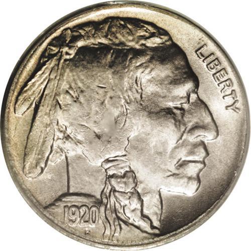 <B>1920-D<5C> MS65 PCGS.</B></I> The 1920-D Buffalo nickel is a less obtainable issue in any Mint State grade and the propensity for poorly struck coins makes it an especially challenging item as a Gem. The attractive representative offered here is endowed with extraordinary sharpness, being also highlighted in splashes of appealing orange-gold toning near the borders. One would have to look long and hard to locate a comparable '20-D nickel. Population: 46 in 65, 1 finer (4/06).