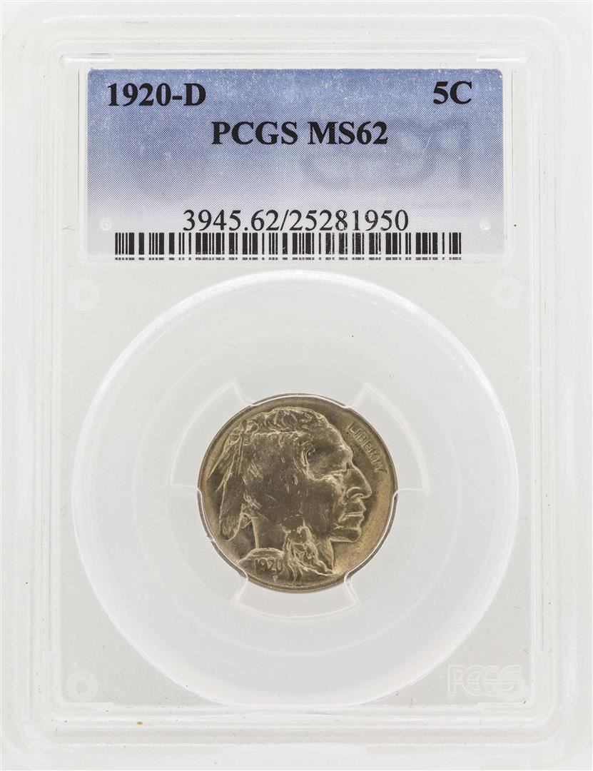 One 1920-D Buffalo Nickel Coin PCGS MS62. PCGS Graded.