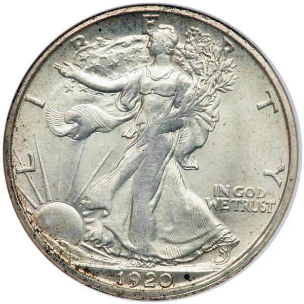 1920-D. NGC graded MS-64. Mostly untoned with the normal soft strike in the centers. A lustrous near-Gem that is well struck and carefully preserved. The obverse has a few miniscule marks. One can never have too many examples of this elusive D-mint Walking Liberty half dollar issue. Pop 79; 15 in 65, 1 in 66.