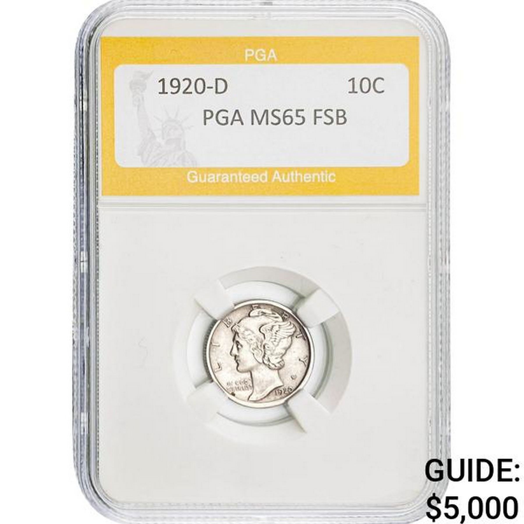 1920-D Mercury Dime PGA MS65 FSB