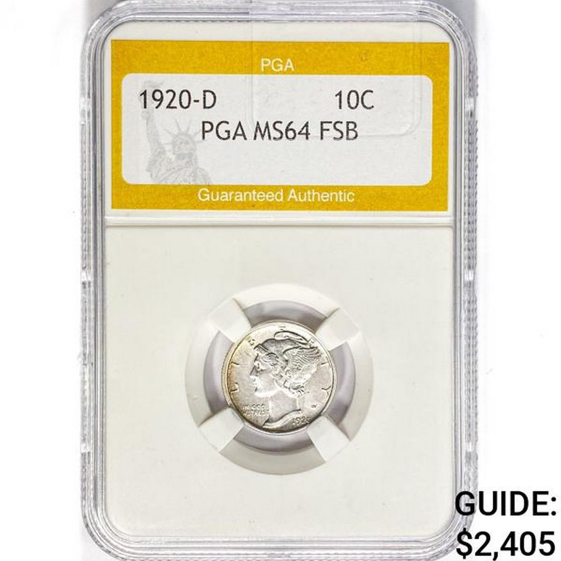 1920-D Mercury Silver Dime PGA MS64 FSB