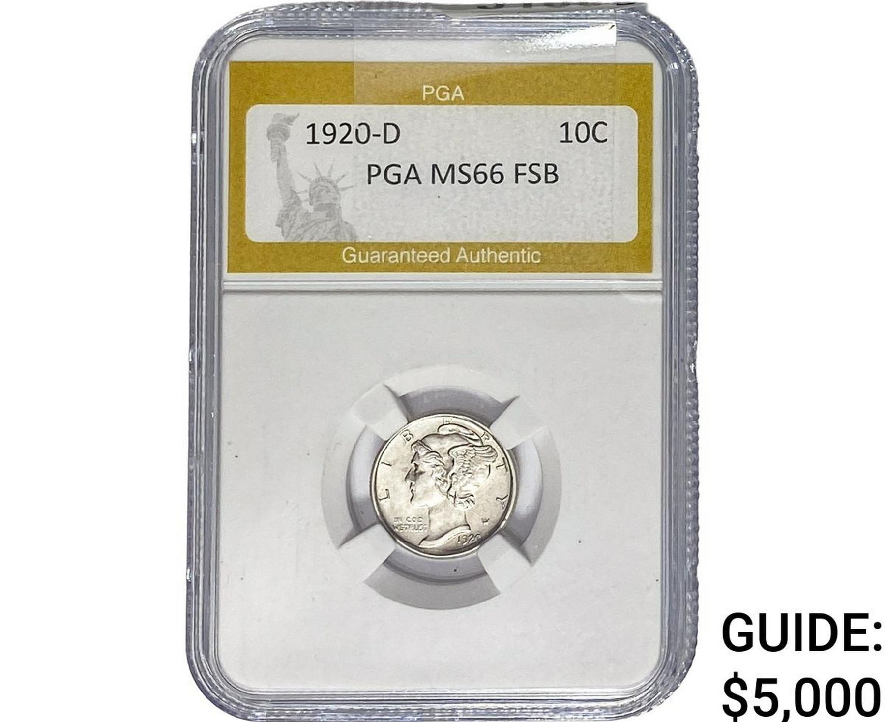 1920-D Mercury Silver Dime PGA MS66 FSB