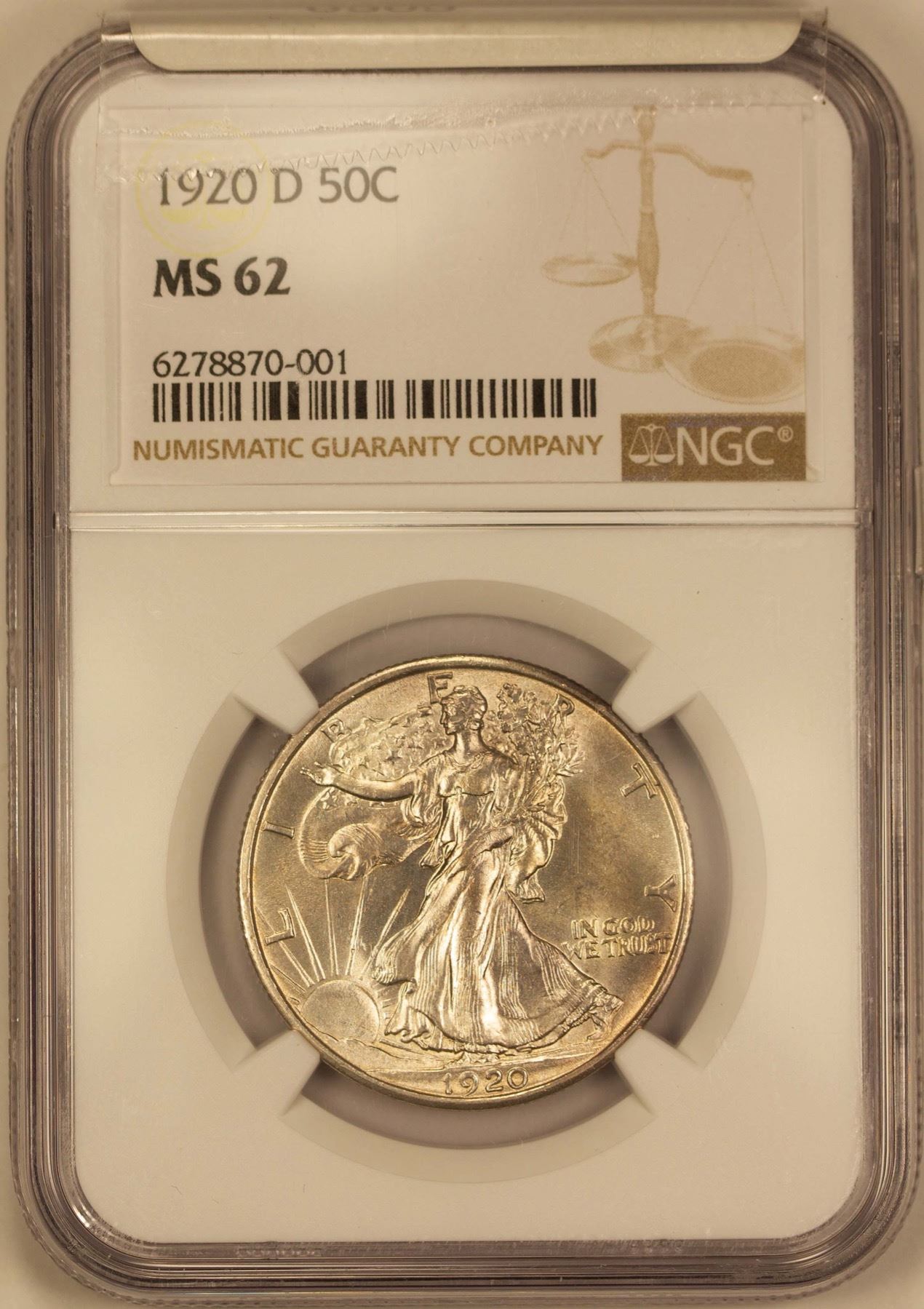 1920-D Walking Liberty Half Dollar 50c NGC MS-62