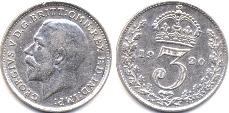 1920 GREAT BRITIAN SILVER 3 PENCE-CIRC