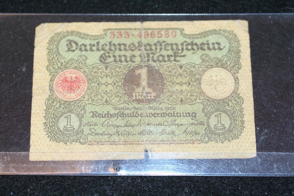 1920 German 1 Darlehosfaffenfehein Eine Mark Foreign Bank Note