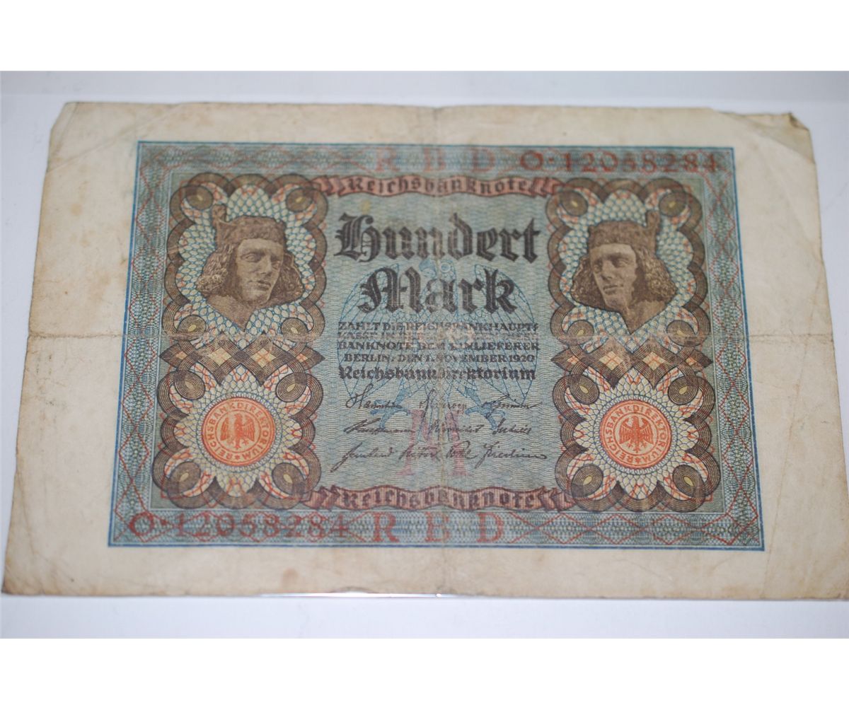 1920 German 100 Fundert Mark Foreign Bank Note; EST. $3-5
