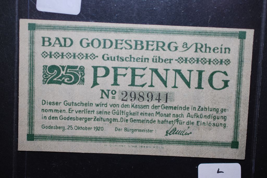 1920 German 25 Pfennig Foreign Bank Note; EST. $5-10