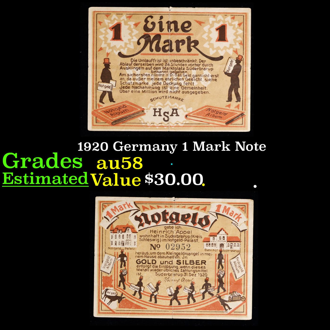 1920 Germany 1 Mark Note Grades Choice AU/BU Slider.