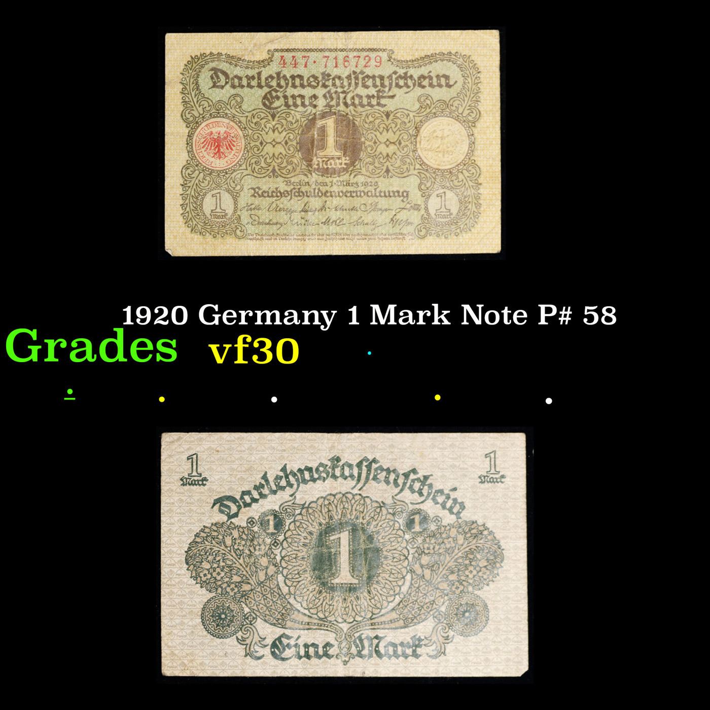 1920 Germany 1 Mark Note P# 58 Grades vf++.