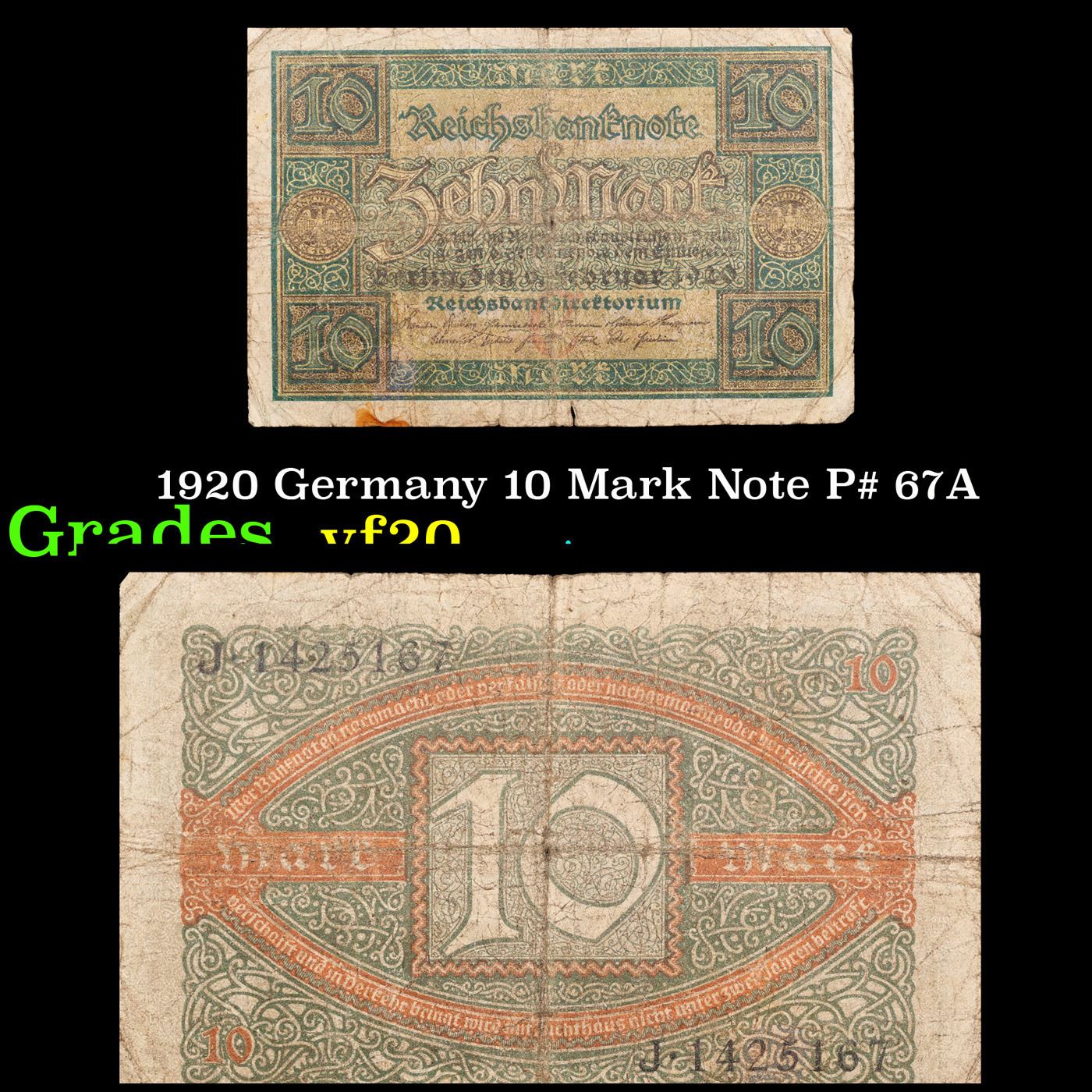 1920 Germany 10 Mark Note P# 67A Grades vf, very fine.