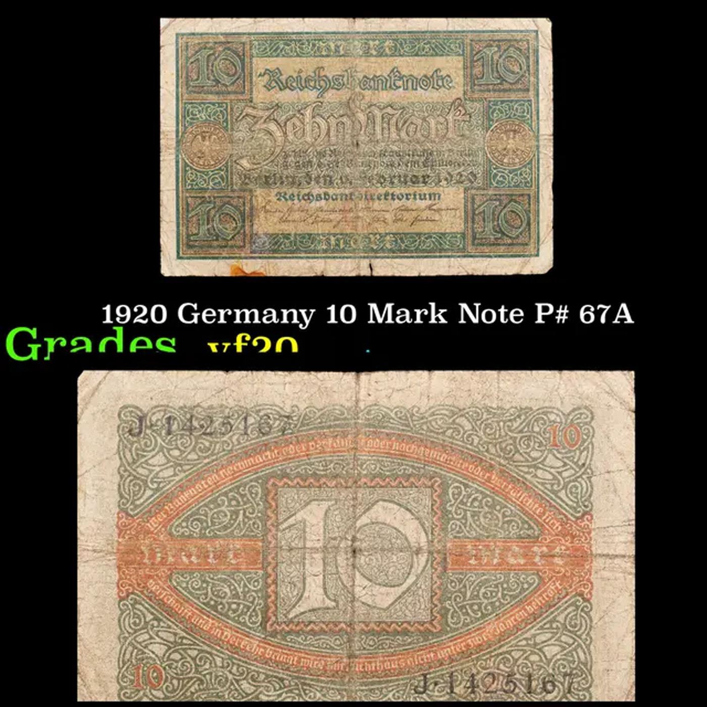 1920 Germany 10 Mark Note P# 67A Grades vf, very fine.