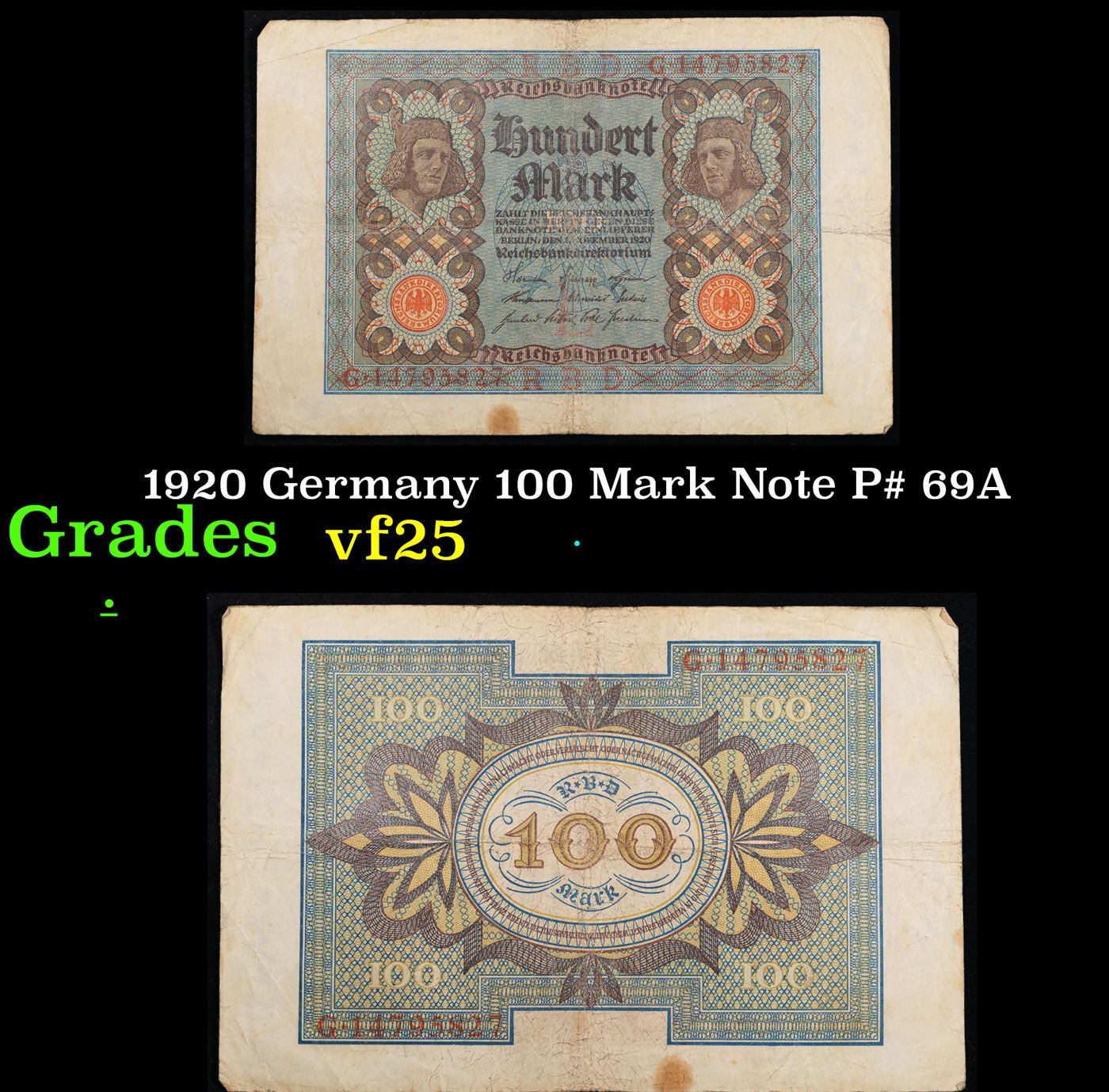 1920 Germany 100 Mark Note P# 69A Grades vf+.