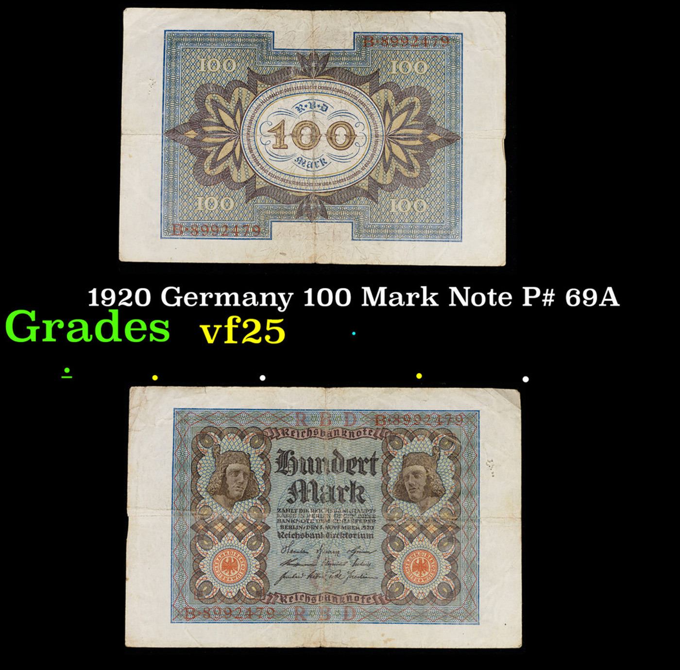 1920 Germany 100 Mark Note P# 69A Grades vf+.
