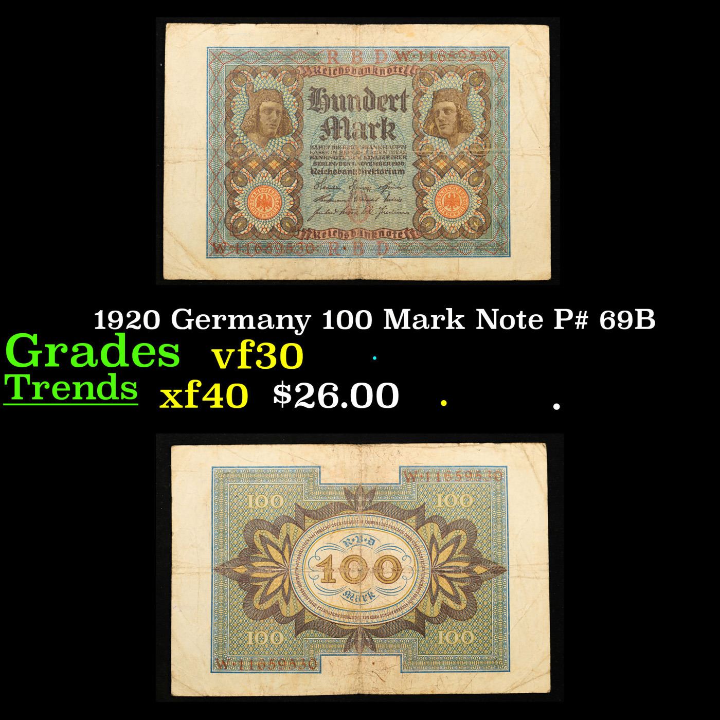 1920 Germany 100 Mark Note P# 69B Grades vf++.