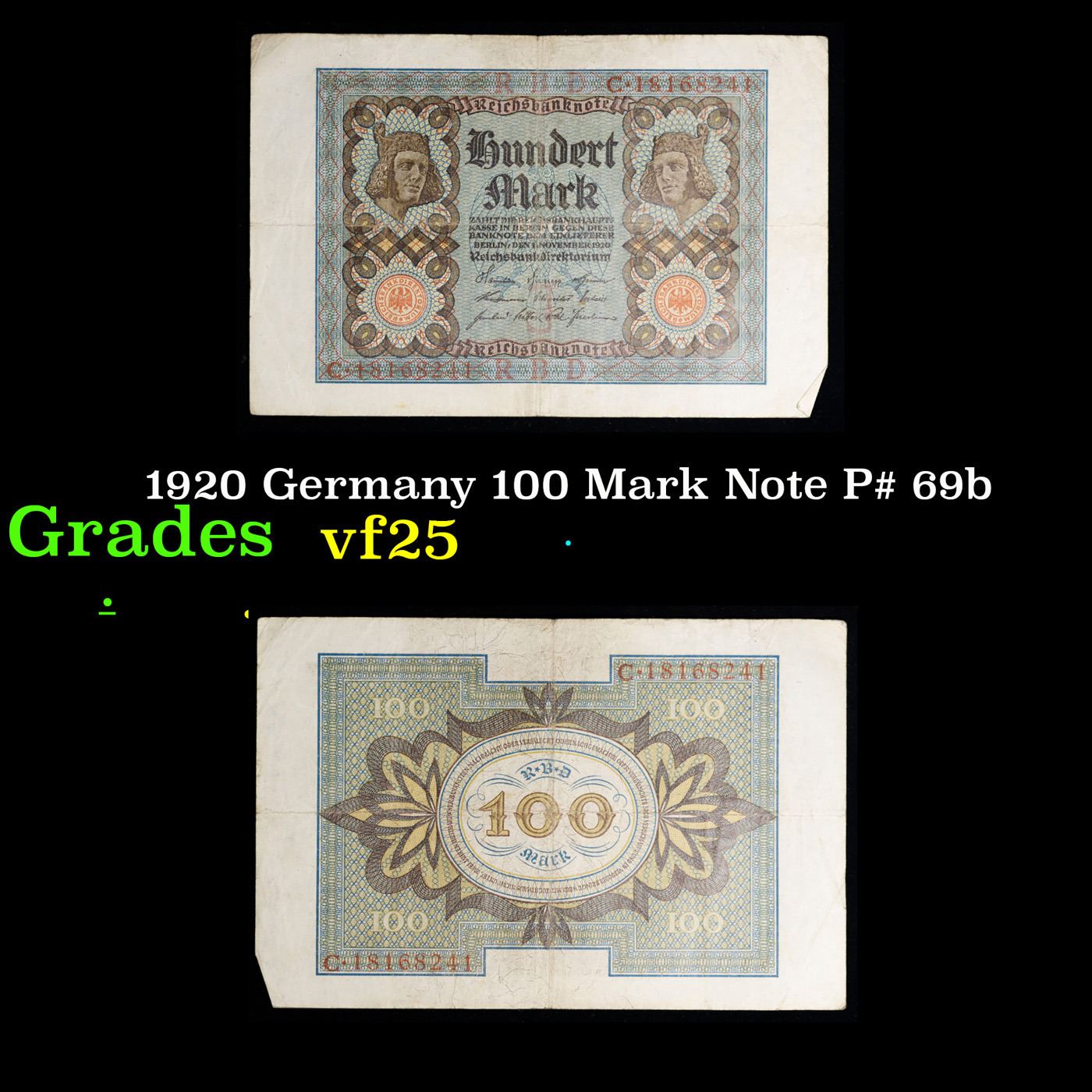 1920 Germany 100 Mark Note P# 69b Grades vf+.