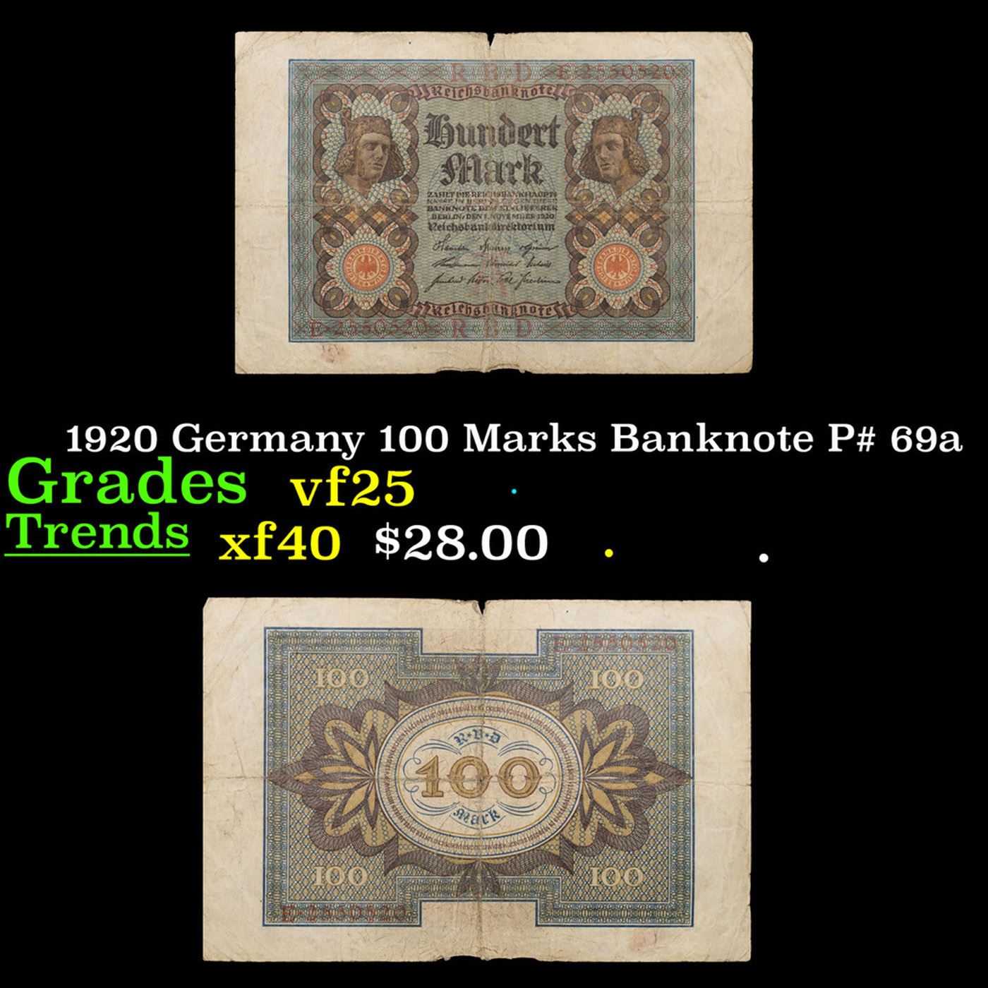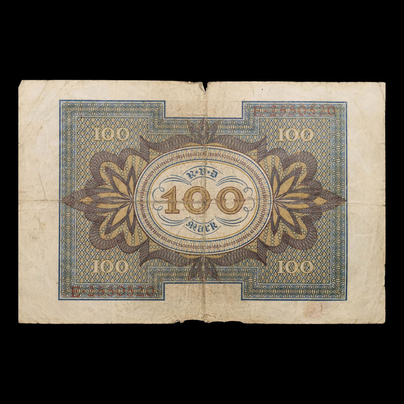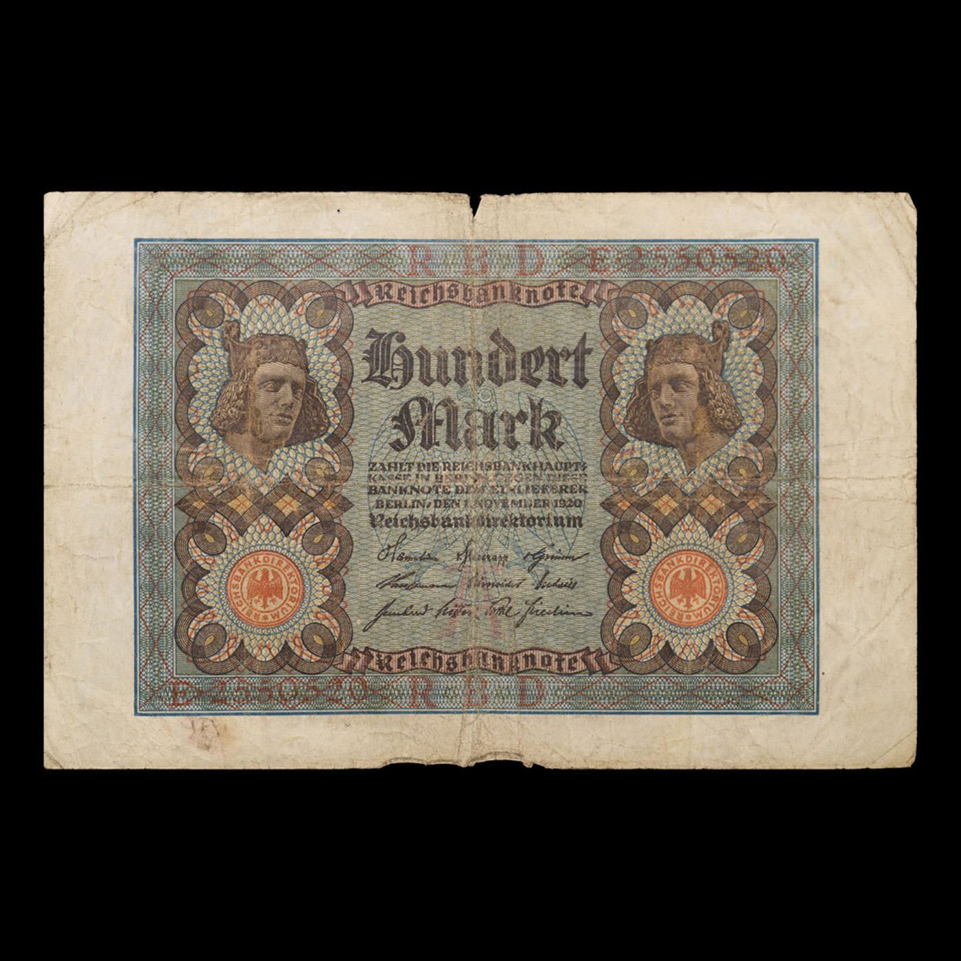 1920 Germany 100 Marks Banknote P# 69a Grades vf+. In August 1914, Directly after the onset of WW1, the German Empire removed the gold backing of the mark and issued new currency. After the fall of the German Empire in 1918, the newly formed German Weimar Republic issued another new currency, known derisively as the "Paper Mark", which faced massive hyperinflation.