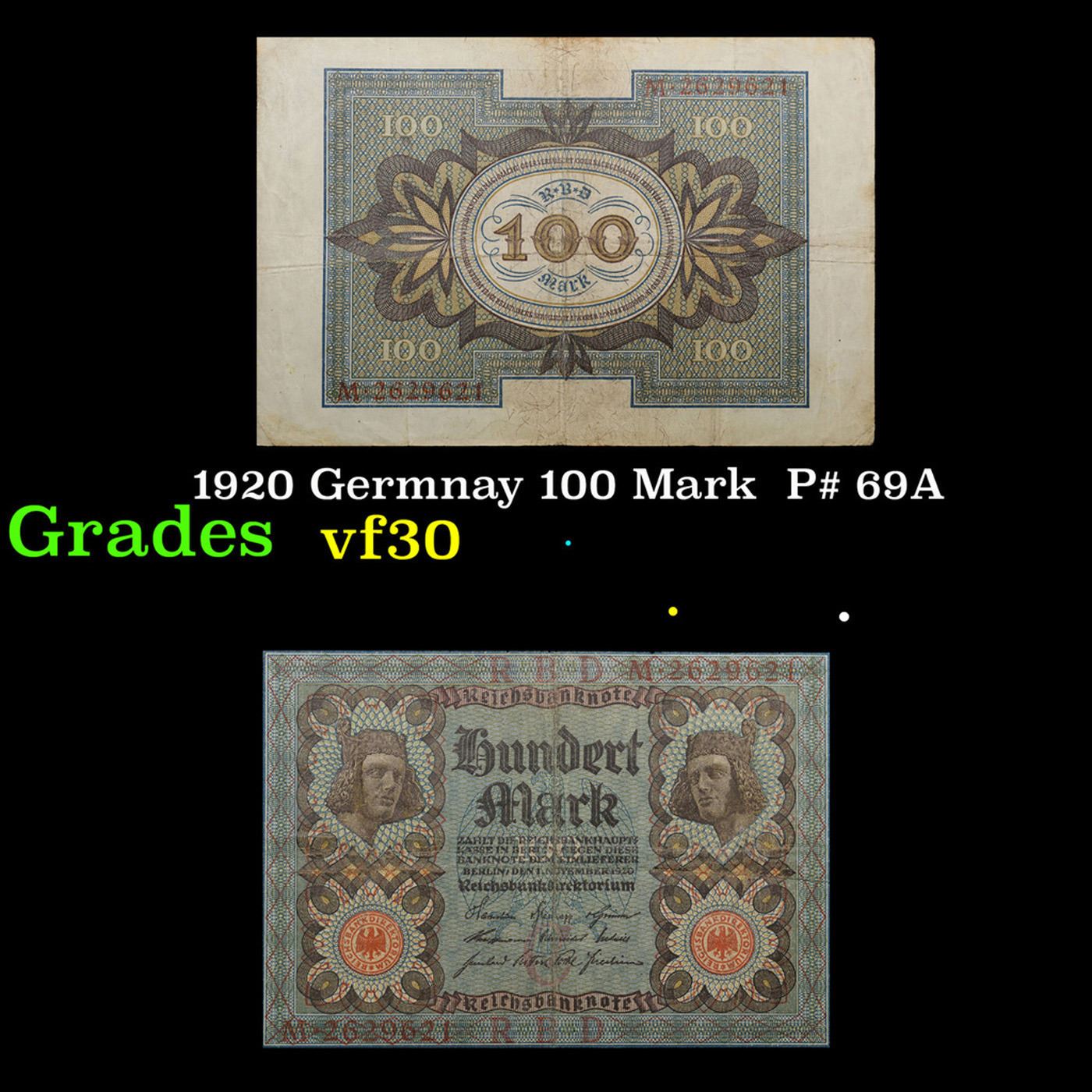 1920 Germany (Weimar Republic) 100 Marks Banknote P# 69A Grades vf++