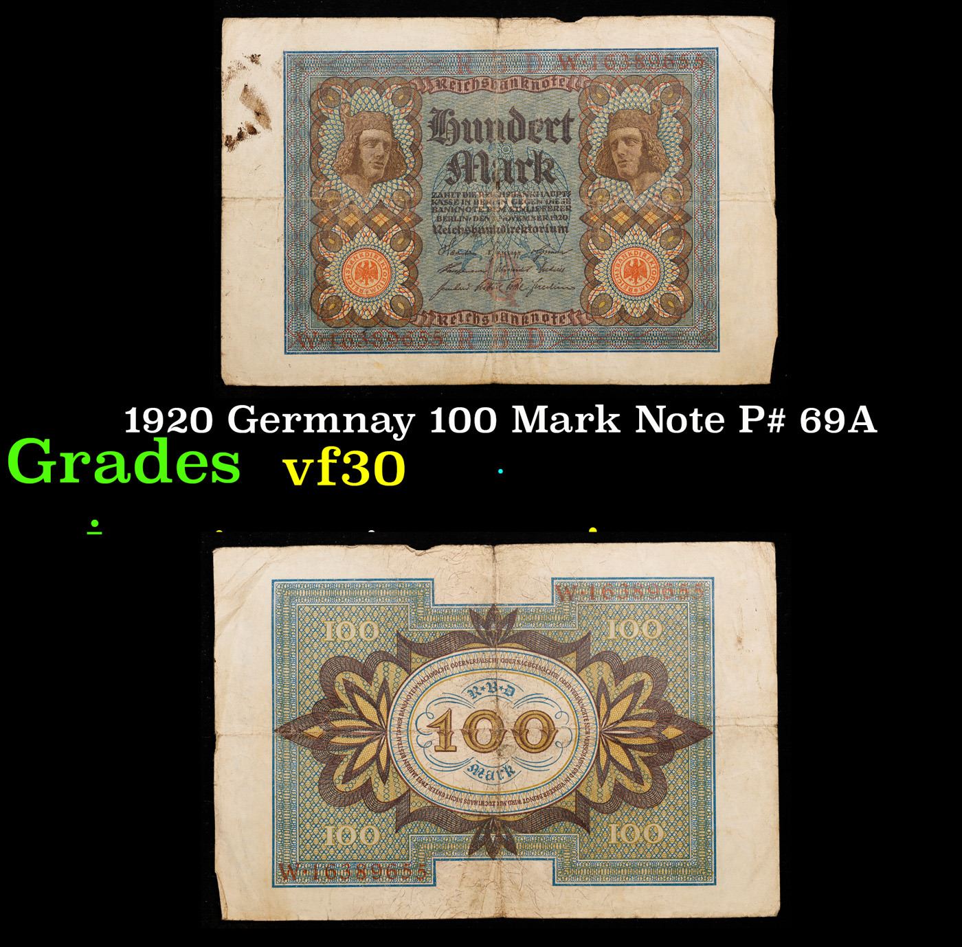 1920 Germnay 100 Mark Note P# 69A Grades vf++.