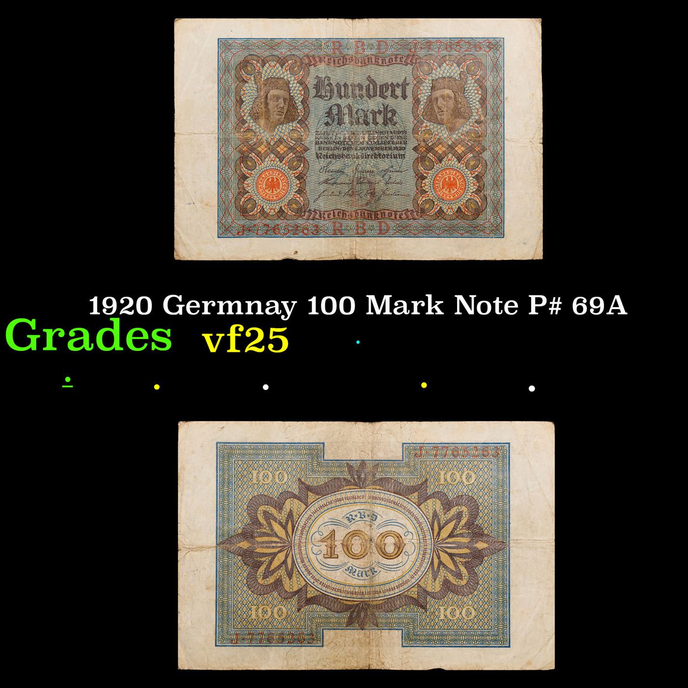 1920 Germnay 100 Mark Note P# 69A Grades vf+.