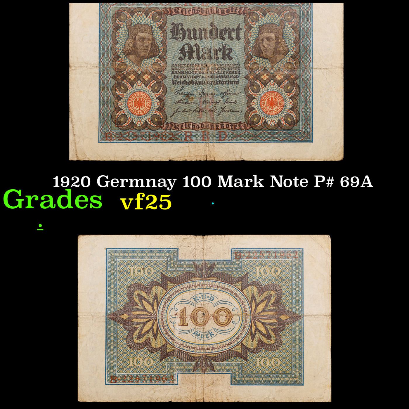 1920 Germnay 100 Mark Note P# 69A Grades vf+.