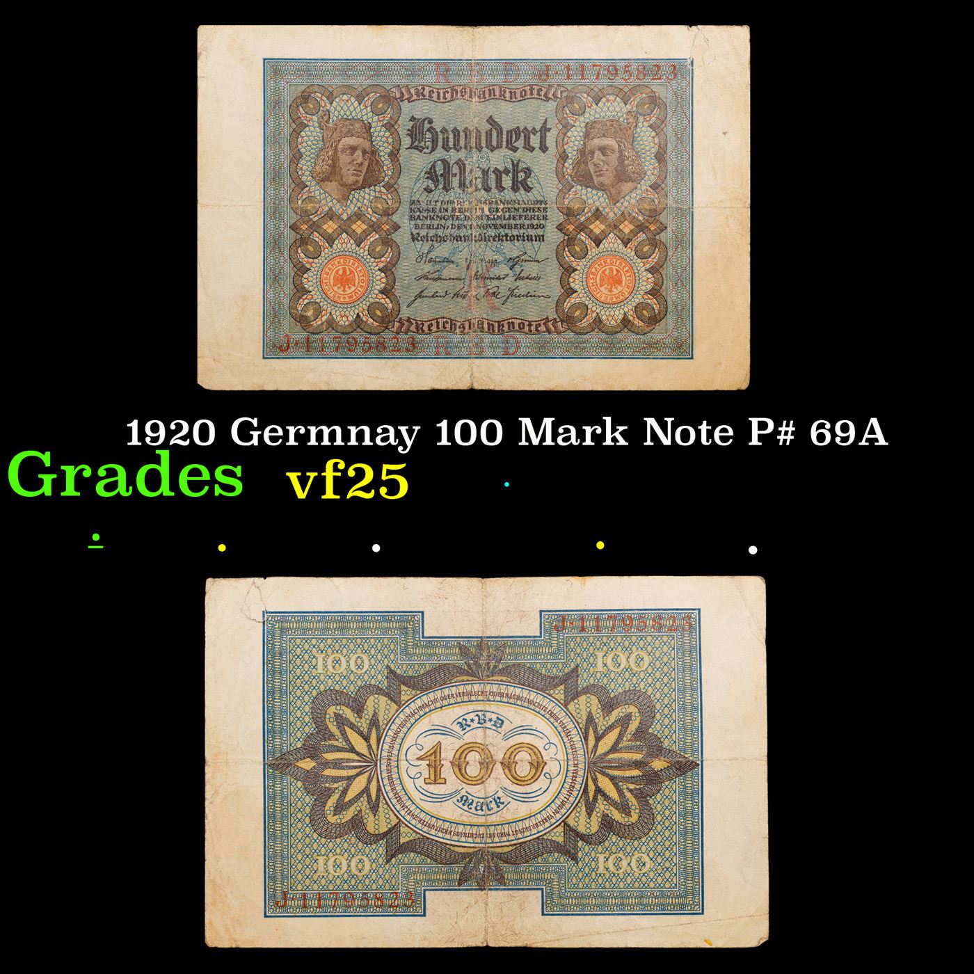 1920 Germnay 100 Mark Note P# 69A Grades vf+.