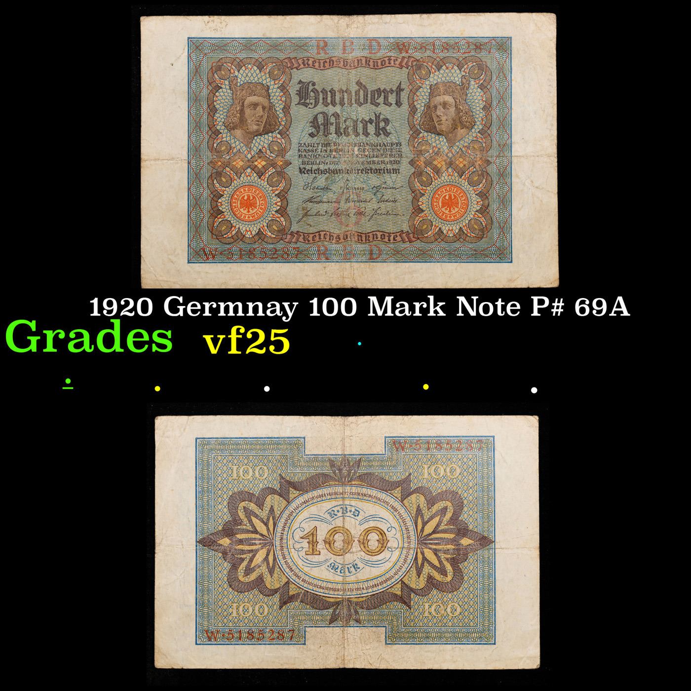 1920 Germnay 100 Mark Note P# 69A Grades vf+.