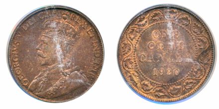 1920. Large. PCGS graded Mint State-65. Red-Brown. 5% remaining luster.