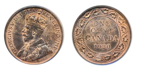 1920. Large. PCGS graded Mint State-65. Red-Brown. 50% red luster.
