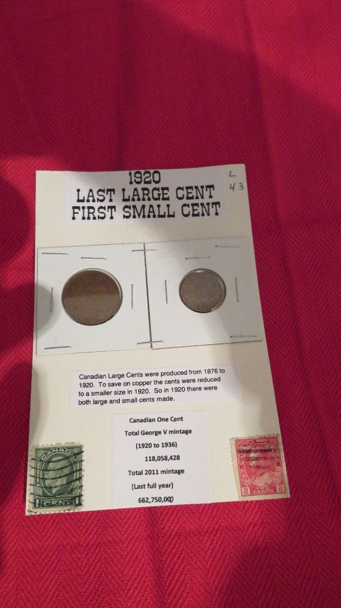 1920 Last year for Canadian large coins and first year the small cent. Both cards displayed on card