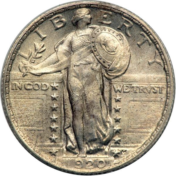1920 Liberty Standing Quarter Dollar. PCGS graded MS-64 Full Head. Well struck except for the date and all, nicely toned (PCGS # 5735) .