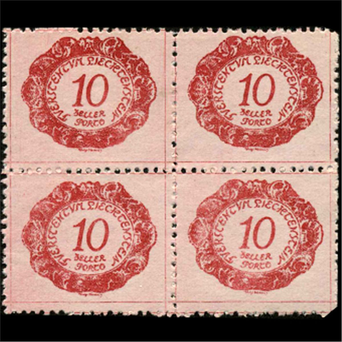 Mint; LH w/ 2 NH scarce mint block of 4 no hidden flaws; mis perf, perfs on frame; improper inking bottom 2 stamps; SC-J2