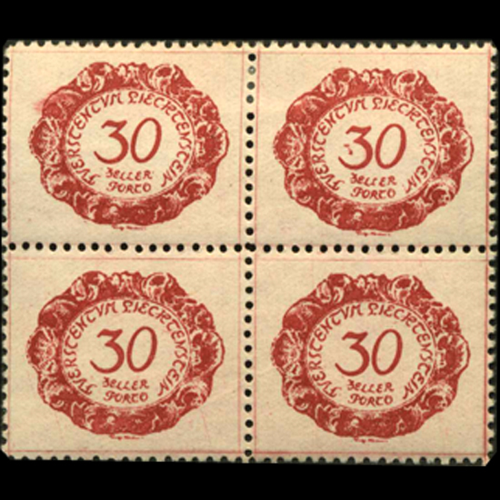Mint; LH w/ 2 NH scarce mint block of 4 no hidden flaws; mis perf, perfs on frame; ink smudge top left and scratches in print block all pieces ; SC-J6