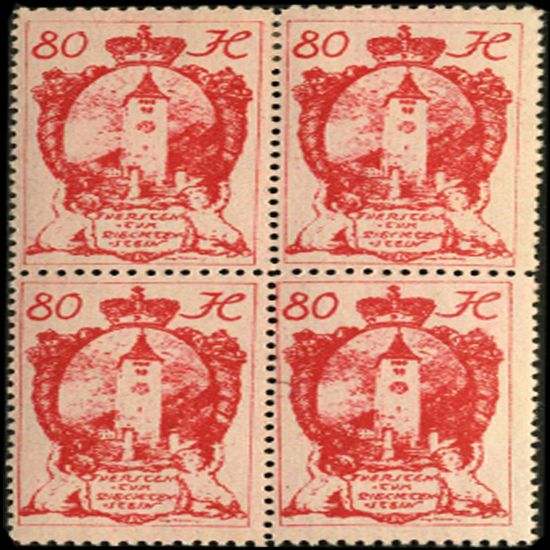 Mint; LH w/ 2 NH scarce mint block of 4 no hidden flaws; broken cross, top right; SC-41